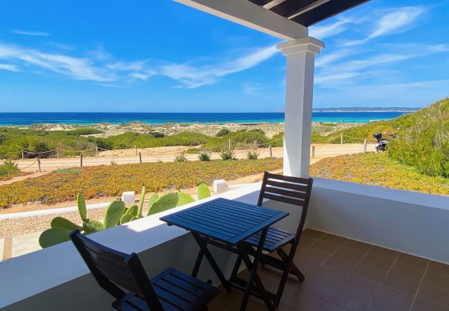 Experimenta esta parte serena y asombrosamente hermosa de la isla mientras disfrutas de vistas al mar desde tu terraza, con la playa de Migjorn a solo 2 minutos a pie.